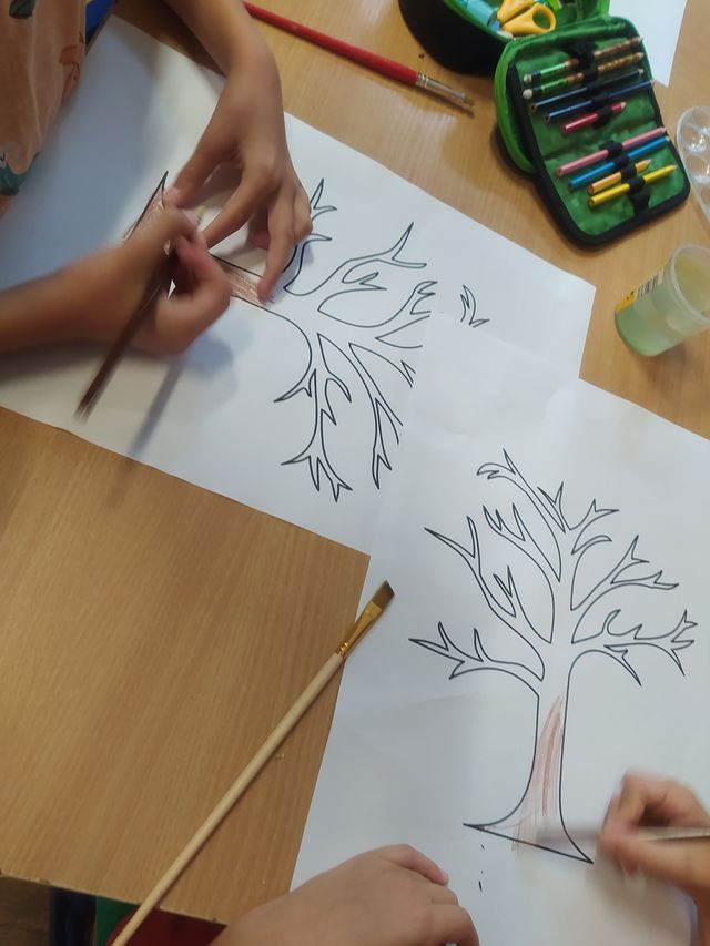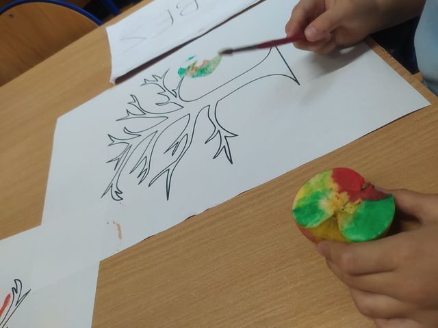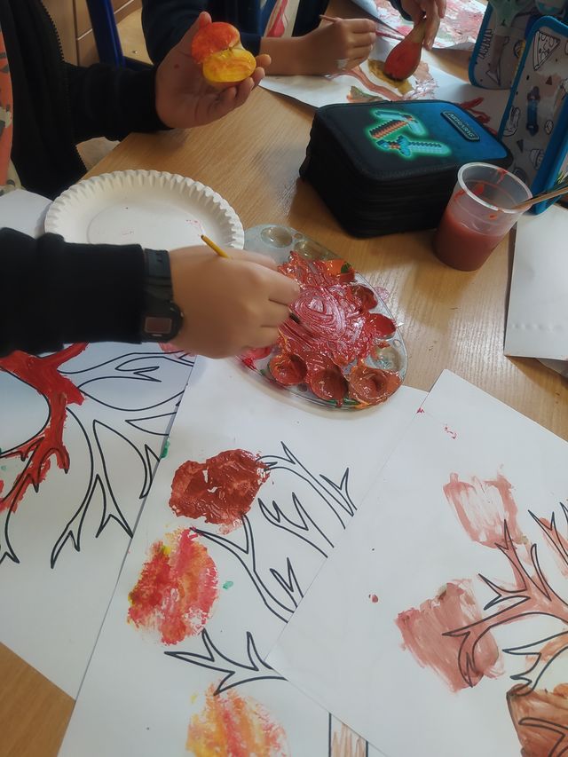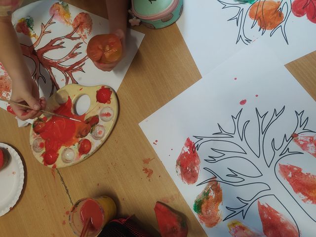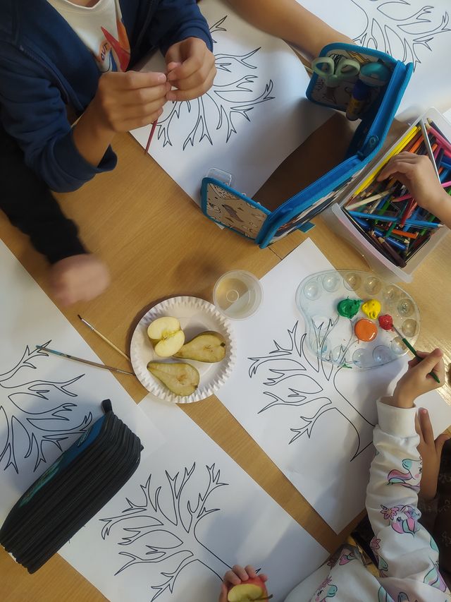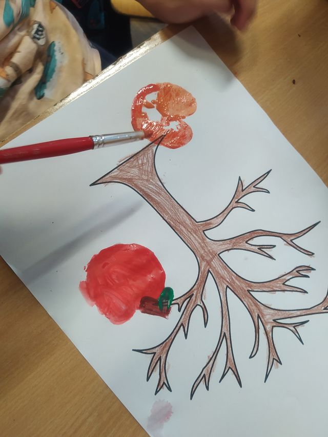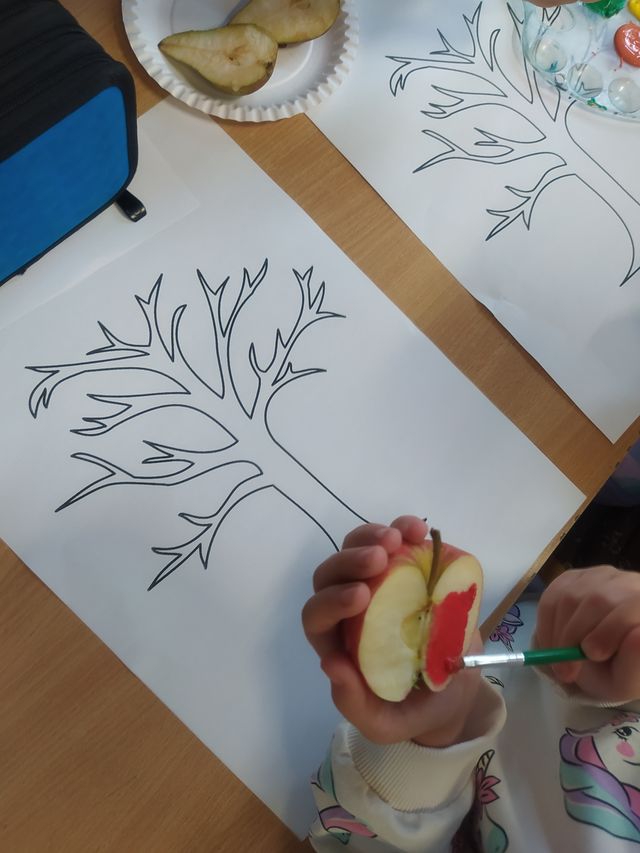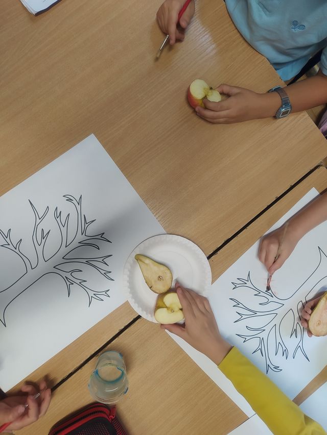 Podczas zajęć przygotowujących do nadejścia jesieni dzieci przebywające w świetlicach szkolnych wcieliły się w role ekologicznych twórców. Liście jesiennych drzew tworzyły z poprzecinanych na połówki jabłek i gruszek. Zabawy przy tym było co niemiara.